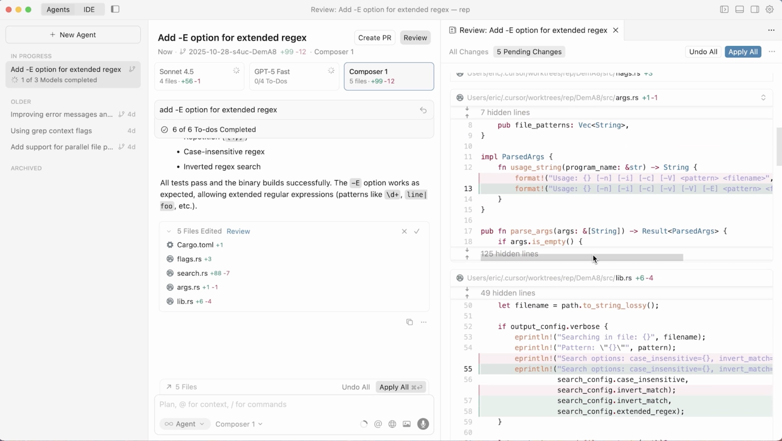 Kako bi podstakao programere da isprobaju novi i nedokazani model, Cursor je istovremeno lansirao i višeagentski interfejs. Ova funkcionalnost omogućava korisnicima da paralelno pokreću više različitih AI modela (uključujući Composer, ali i modele kompanija OpenAI, Google i Anthropic) na istom zadatku. Na ovaj način, programeri mogu direktno uporediti rezultate i izabrati najbolji, čime se smanjuje rizik prelaska na novu tehnologiju. Prve, nezvanične povratne informacije od strane programera ukazuju na to da Composer nije neefikasan, ali da se smatra preskupim s obzirom na percipirani jaz u sposobnostima u odnosu na etablirane modele poput Anthropic-ovog Claude-a.